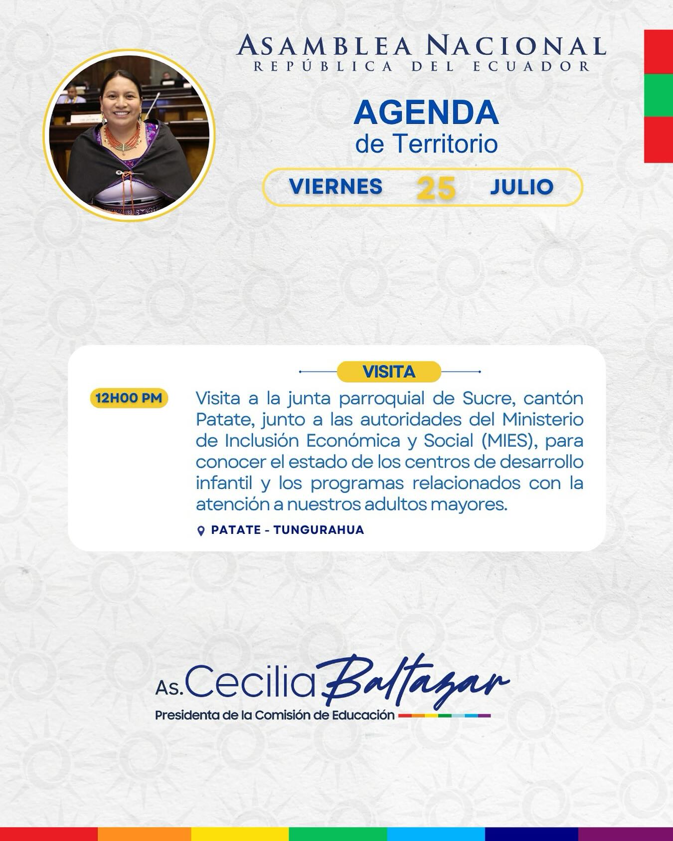Desde mi curul me encuentro impulsado los procesos de legislación y fiscalización, que permitan la protección de los derechos individuales como la educación, salud, fortalecimiento económico y seguridad. Estos procesos las desarrollo desde los territorios, junto a hombres y mujeres que realizan grandes aportes en sus familias, parroquiales y cantones de la provincia de Tungurahua.