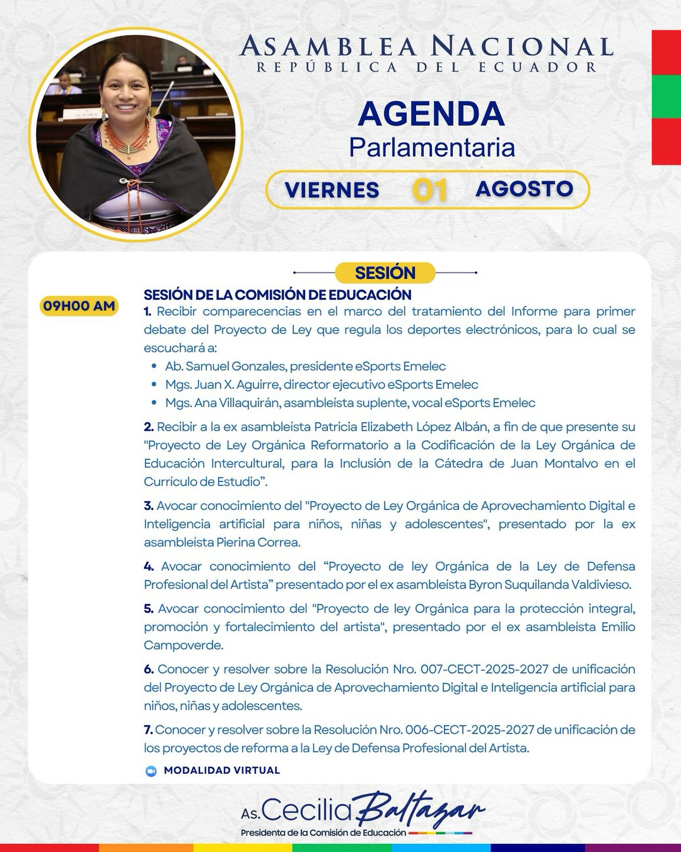 #AgendaParlamentaria para hoy, viernes 01 de agosto.