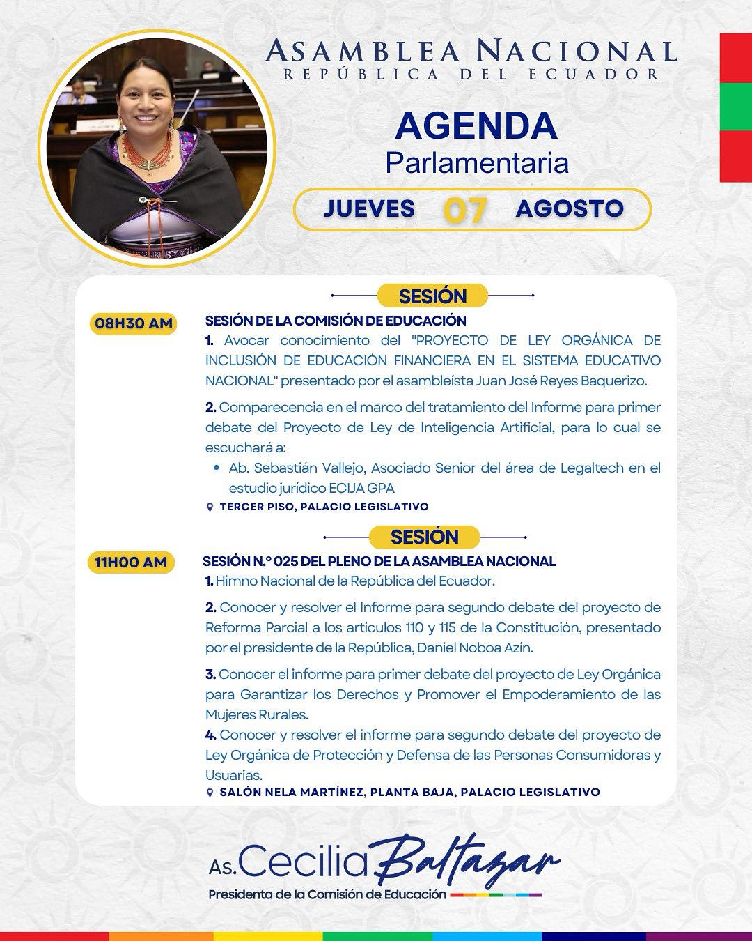 #AgendaParlamentaria para hoy, jueves 07 de agosto.