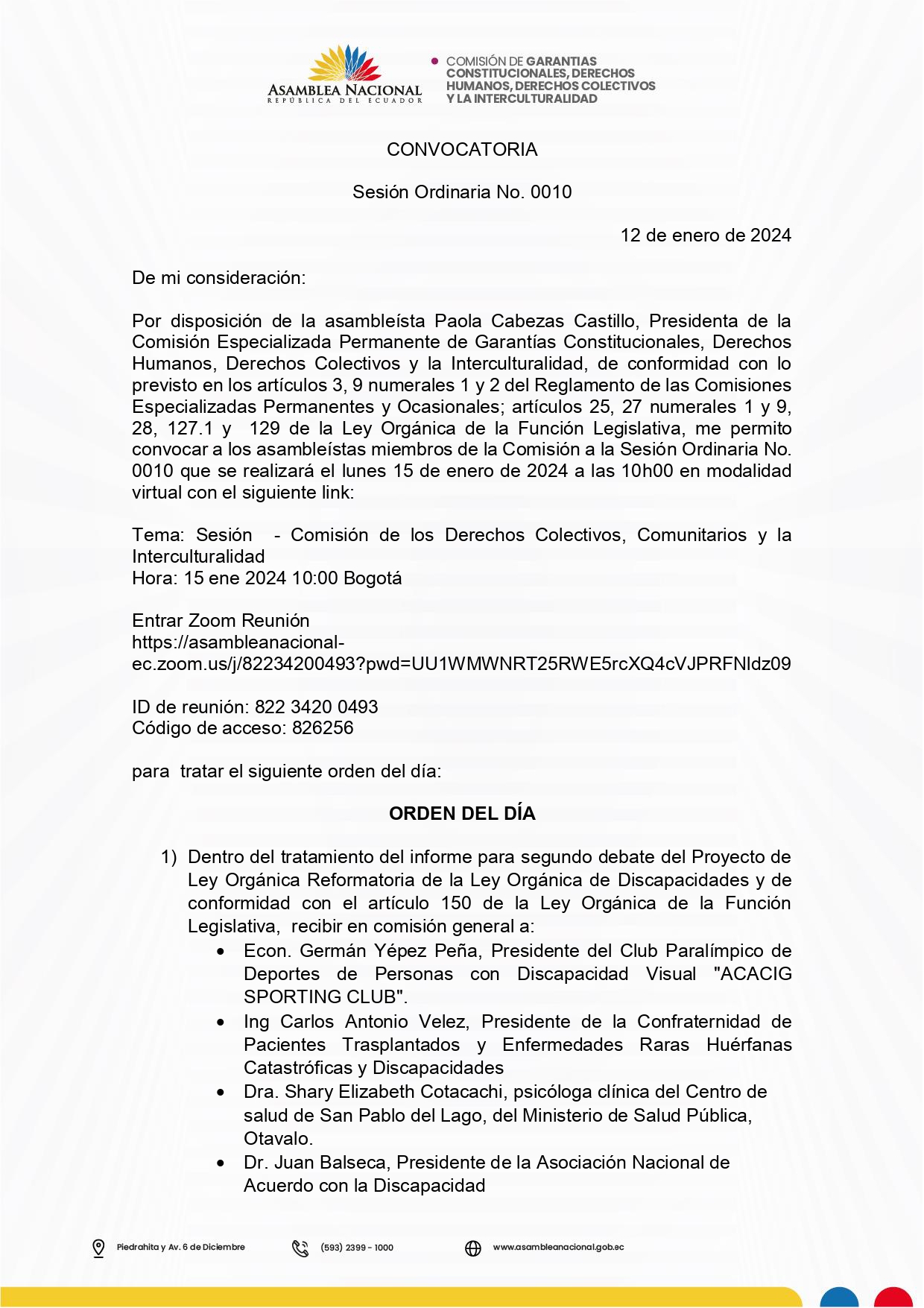 Convocatoria 15 de enero de 2024