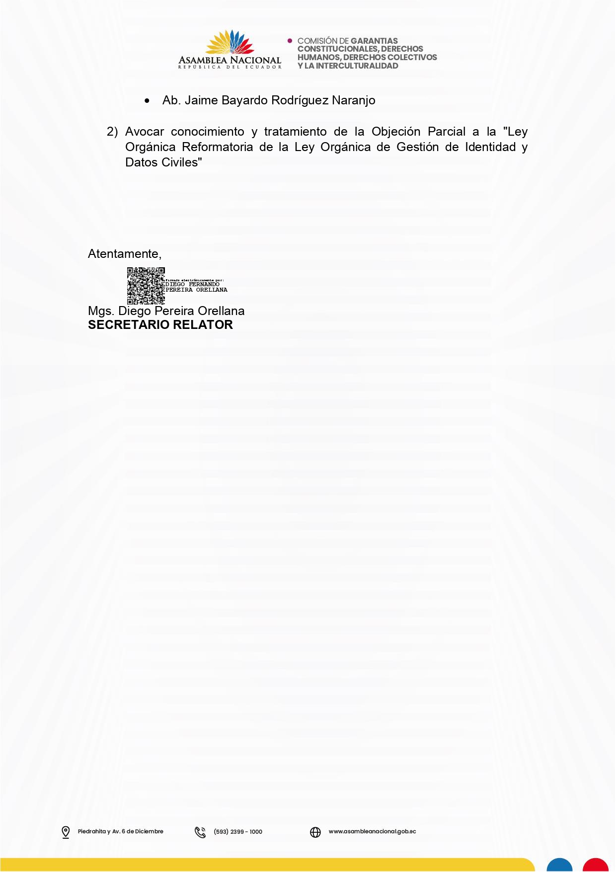 Contáctame E-mail - Comisión de Garantías Constitucionales, Derechos Humanos, Derechos Colectivos y la Interculturalidad