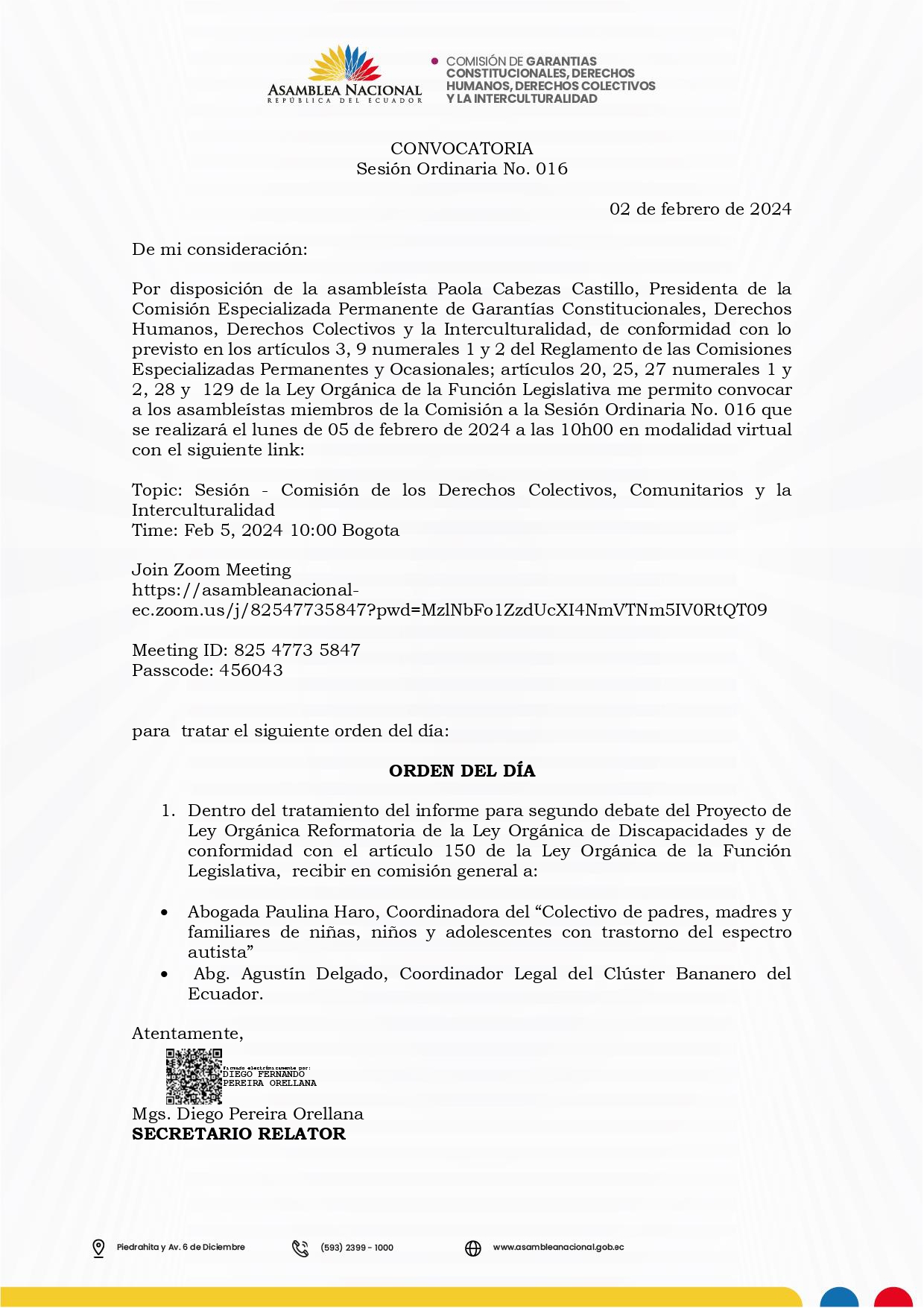 Contáctame E-mail - Comisión de Garantías Constitucionales, Derechos Humanos, Derechos Colectivos y la Interculturalidad