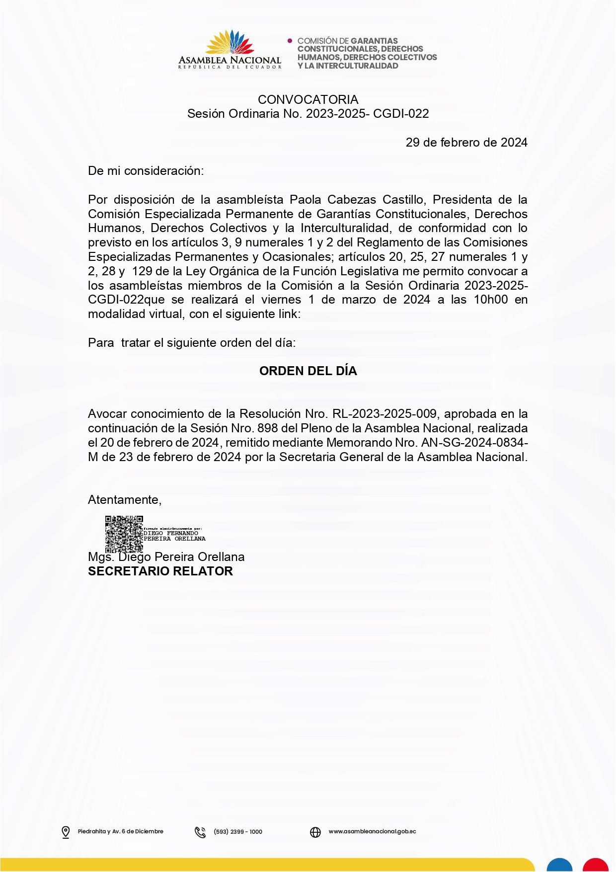 Contáctame E-mail - Comisión de Garantías Constitucionales, Derechos Humanos, Derechos Colectivos y la Interculturalidad