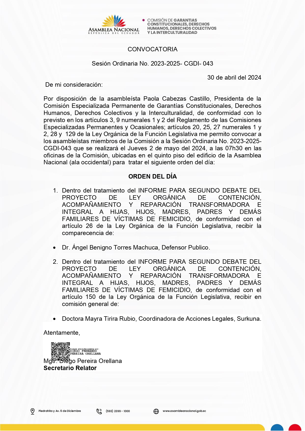 Contáctame E-mail - Comisión de Garantías Constitucionales, Derechos Humanos, Derechos Colectivos y la Interculturalidad