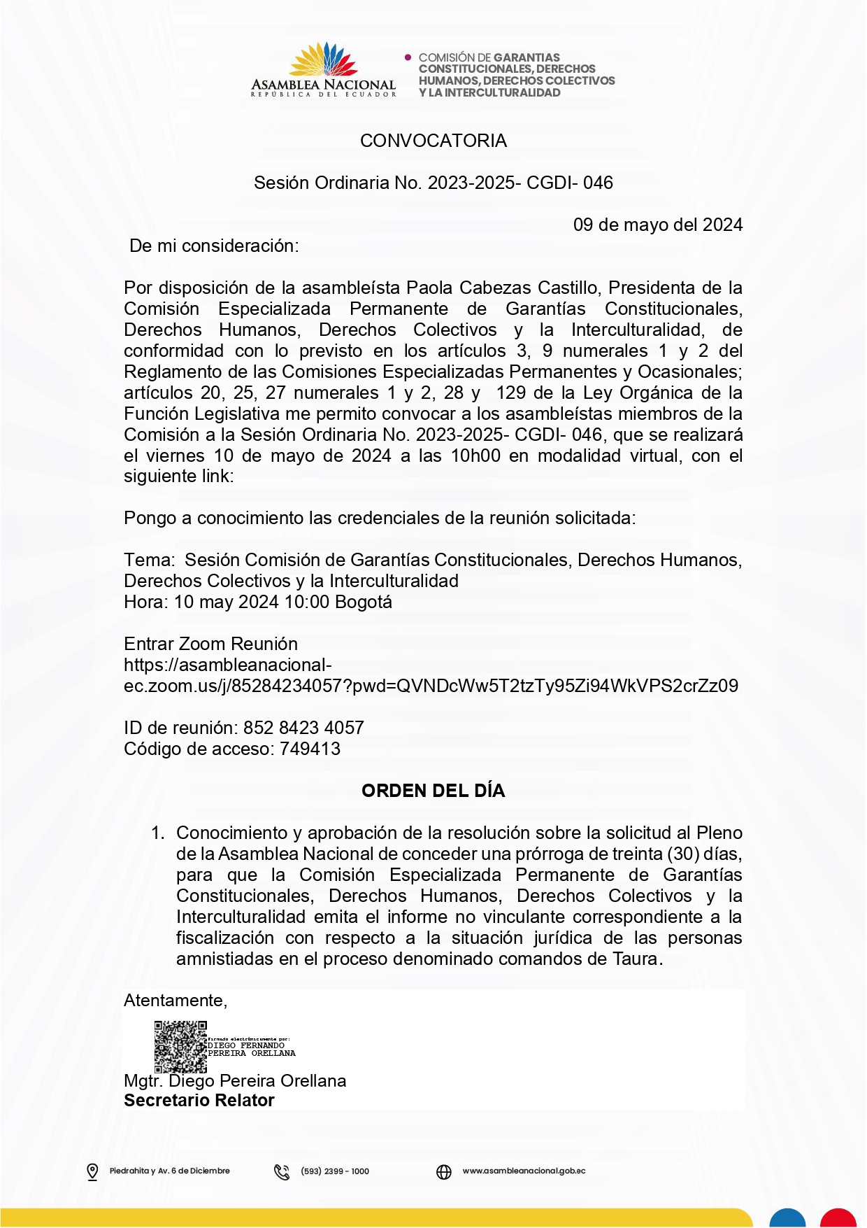 Contáctame E-mail - Comisión de Garantías Constitucionales, Derechos Humanos, Derechos Colectivos y la Interculturalidad