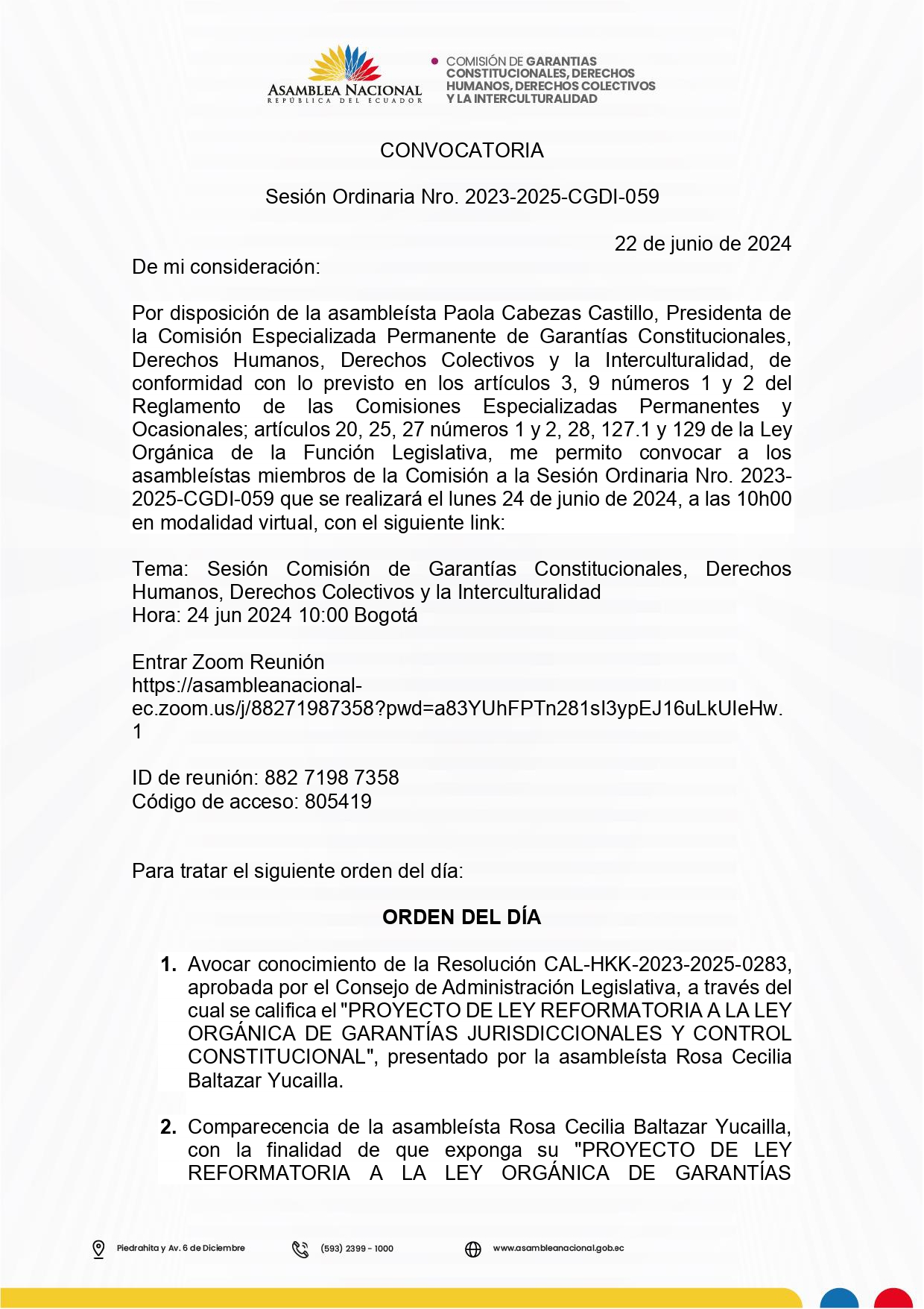 Comisión de Garantías Constitucionales, Derechos Humanos, Derechos Colectivos y la Interculturalidad