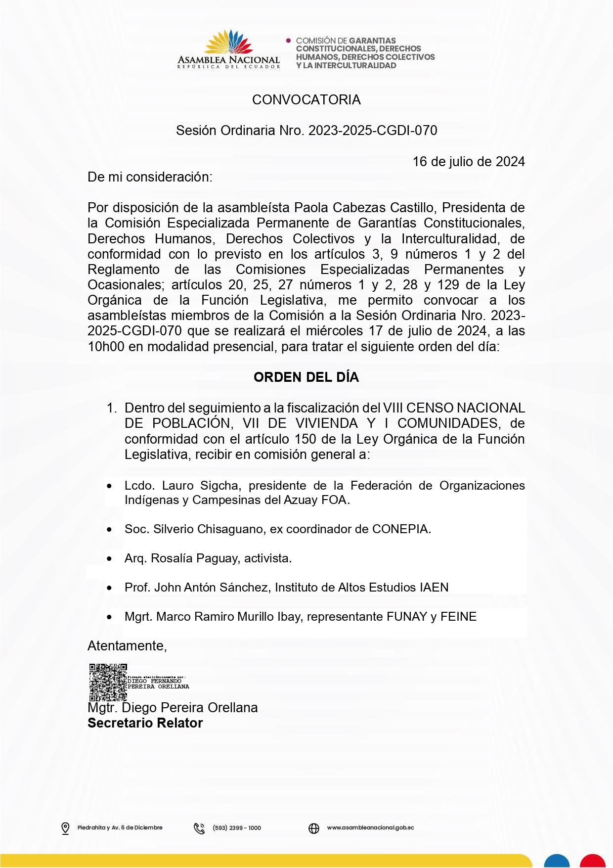 Convocatoria 17 de julio de 2024