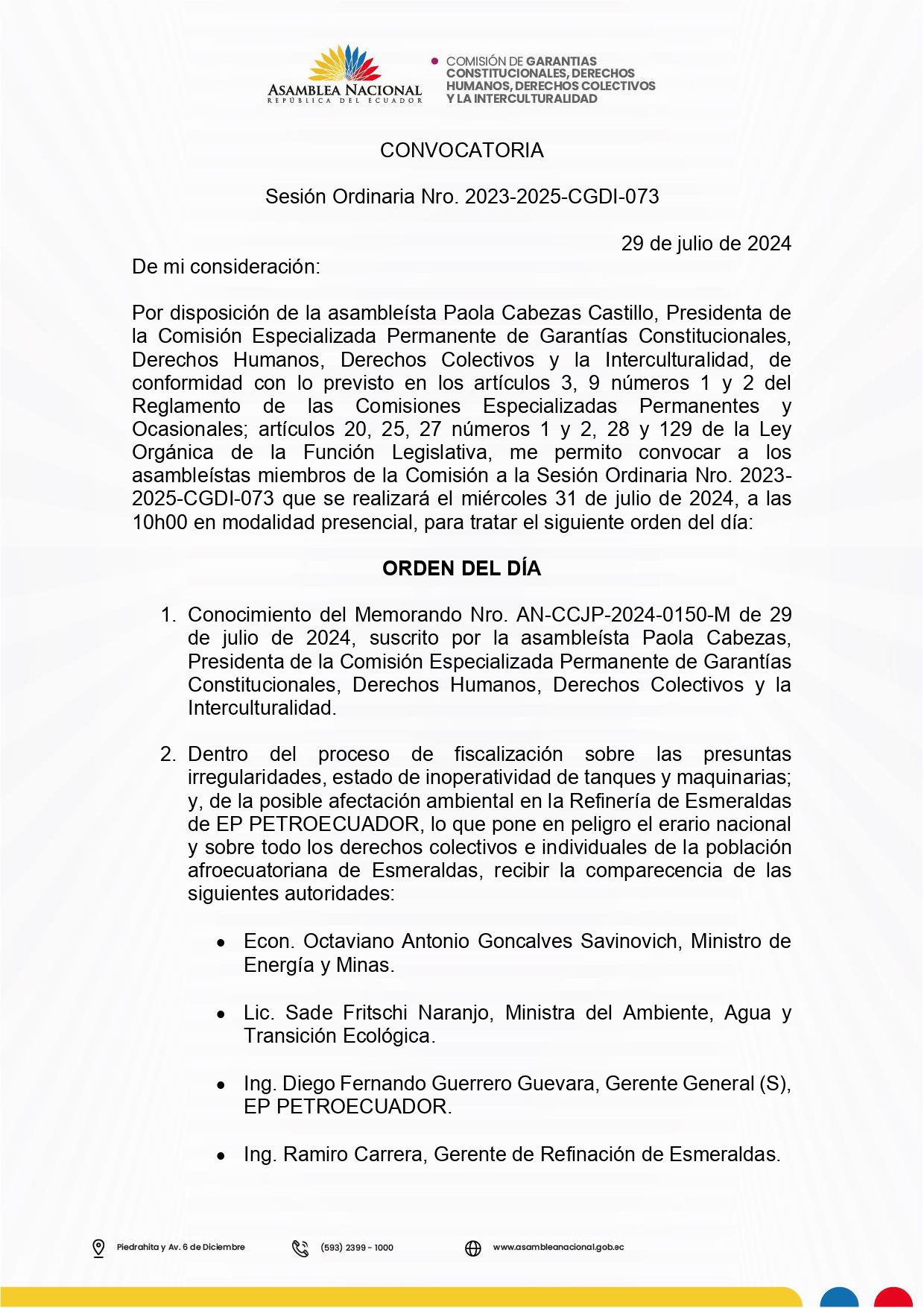Convocatoria 31 de julio de 2024