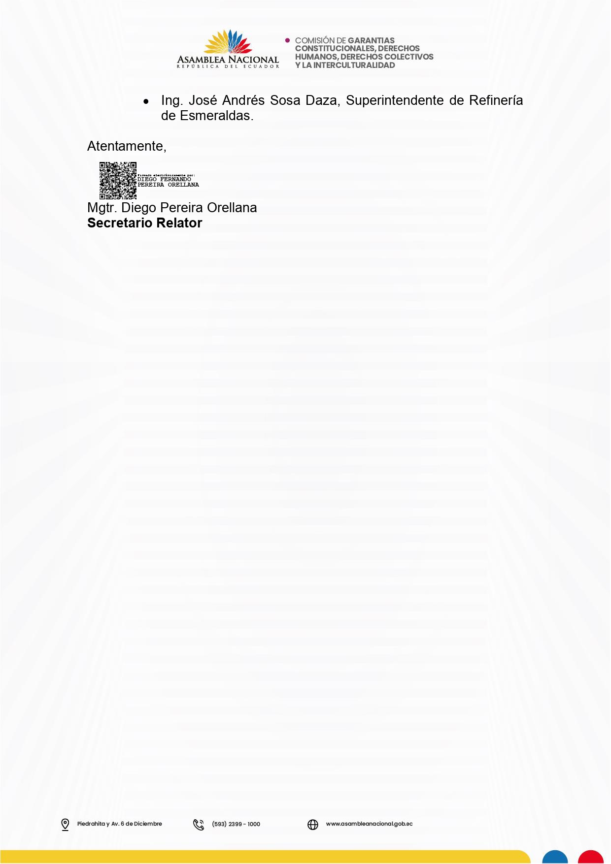 Contáctame E-mail - Comisión de Garantías Constitucionales, Derechos Humanos, Derechos Colectivos y la Interculturalidad