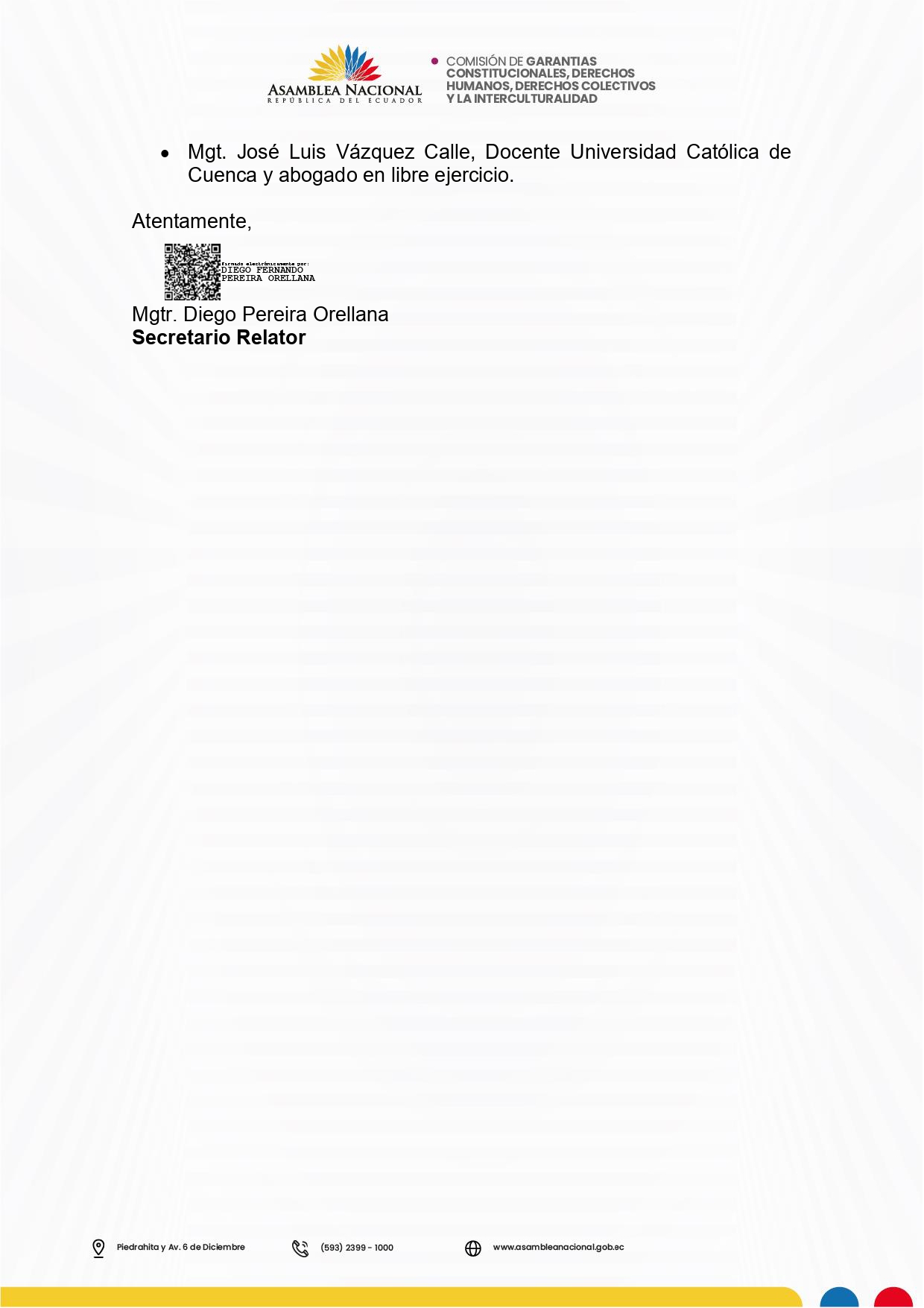 Contáctame E-mail - Comisión de Garantías Constitucionales, Derechos Humanos, Derechos Colectivos y la Interculturalidad