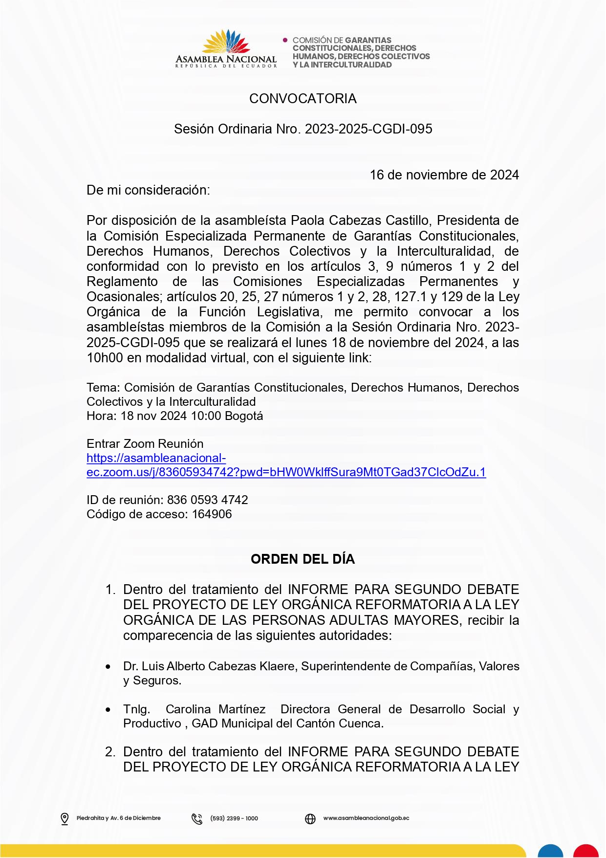 Convocatoria 18 de noviembre de 2024