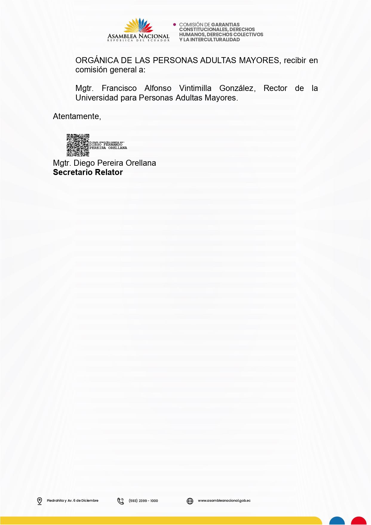 Contáctame E-mail - Comisión de Garantías Constitucionales, Derechos Humanos, Derechos Colectivos y la Interculturalidad