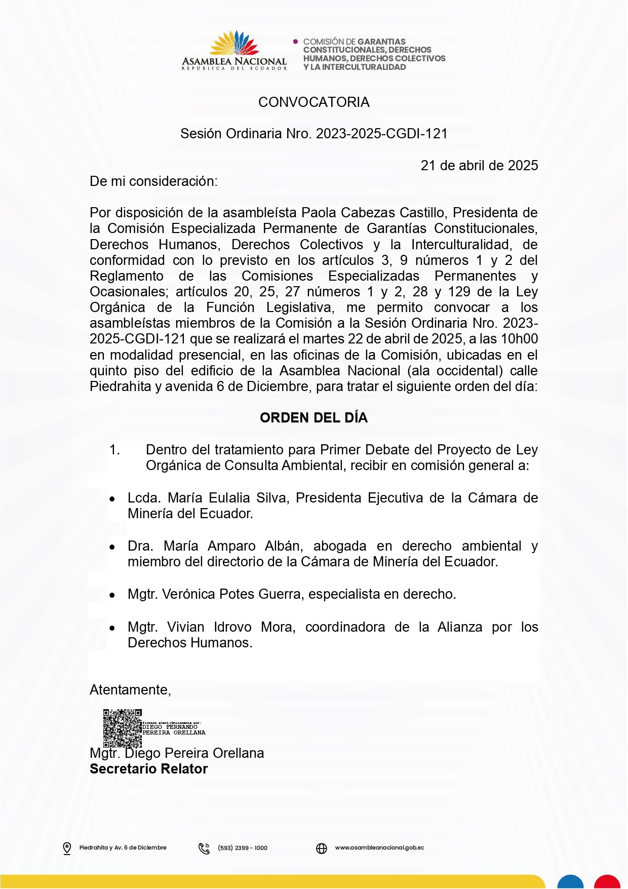 Contáctame E-mail - Comisión de Garantías Constitucionales, Derechos Humanos, Derechos Colectivos y la Interculturalidad