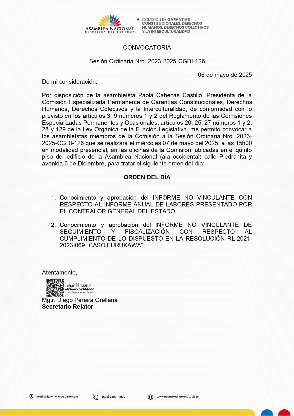Contáctame E-mail - Comisión de Garantías Constitucionales, Derechos Humanos, Derechos Colectivos y la Interculturalidad