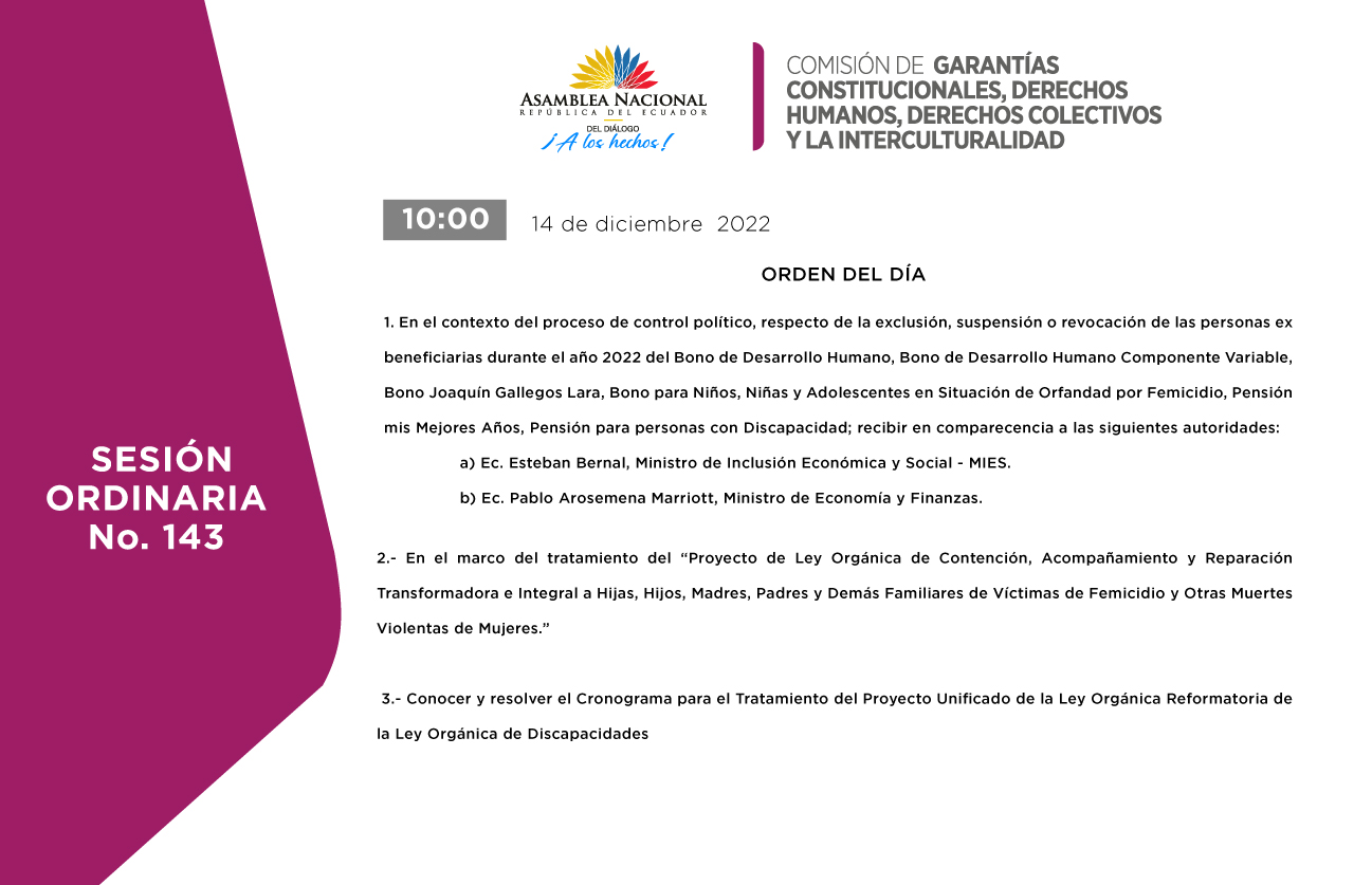Comparto la agenda de activiades la sesion ordinaria Nro143 de la comisión