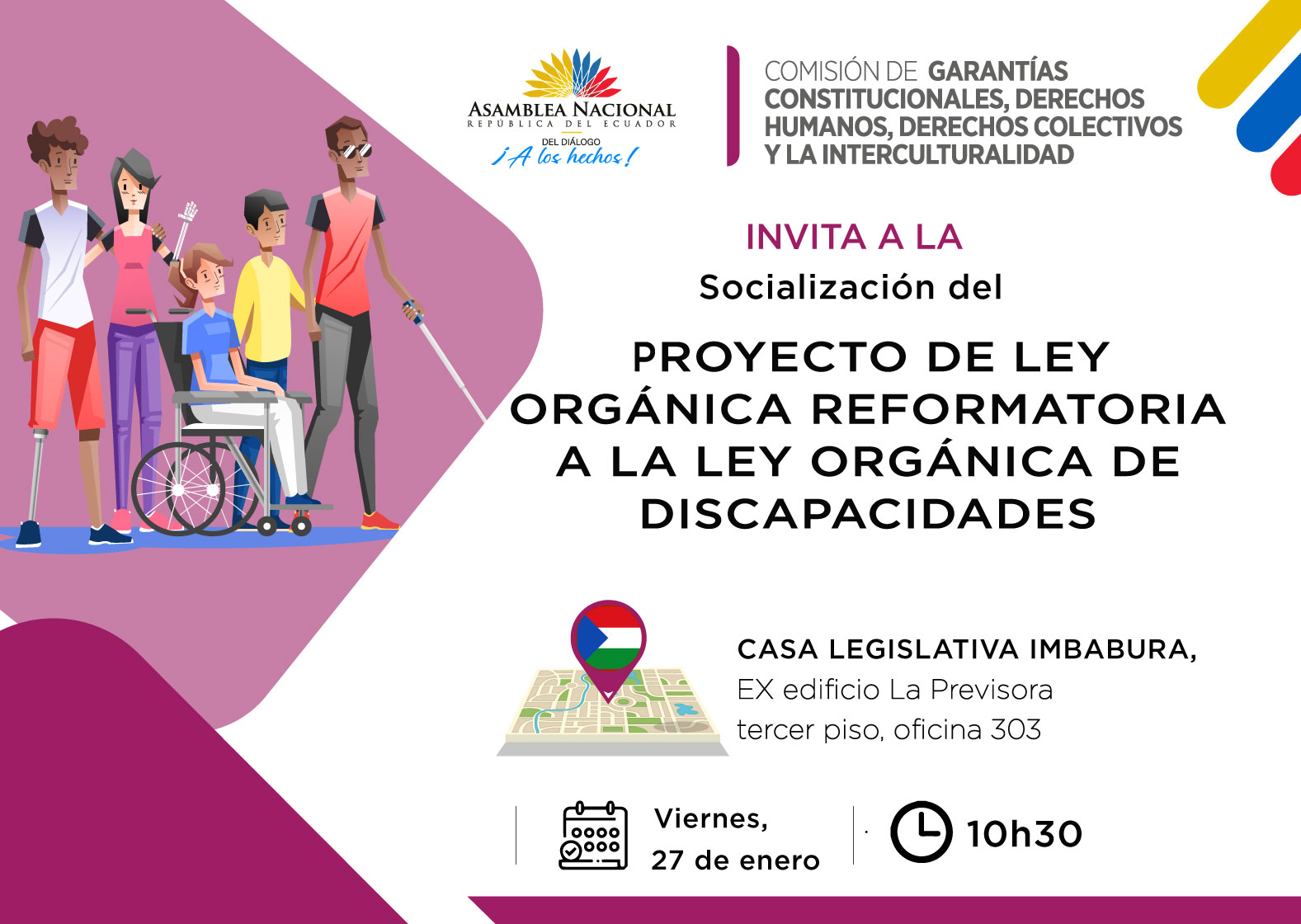 Agenda | Socialización Proyecto de Ley Orgánica Reformatoria a la Ley Orgánica de Discapacidades de la Comisión de Garantías Constitucionales, Derechos Humanos, Derechos Colectivos y la Interculturalidad