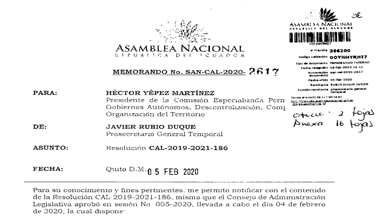 Puede remitir sus comentarios y observaciones sobre el proyecto de ley al correo electrónico comision.gobiernos-autonomos@asambleanacional.gob.ec.