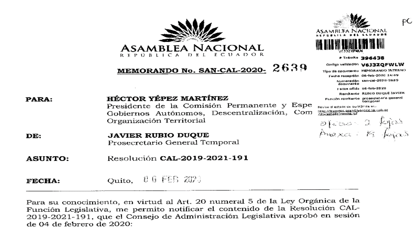 Puede remitir sus comentarios y observaciones sobre el proyecto de ley al correo electrónico comision.gobiernos-autonomos@asambleanacional.gob.ec