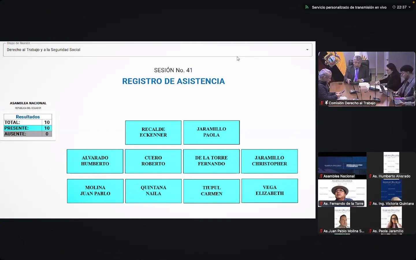 La tarde del 21 de noviembre de 2025, a las 15h21, se instaló la Sesión N.041 de la Comisión del Derecho al Trabajo y a la Seguridad Social, un espacio donde la técnica, el compromiso y la responsabilidad legislativa se encuentran para construir un Ecuador más justo. Durante esta jornada, realizada en modalidad virtual, los asambleístas y sus equipos abordaron un tema fundamental: el análisis y aprobación del informe para segundo debate del Proyecto de Ley Orgánica Reformatoria para el Fortalecimiento del Trabajo en el Sector Público y Privado y de sus Organizaciones Sindicales.
