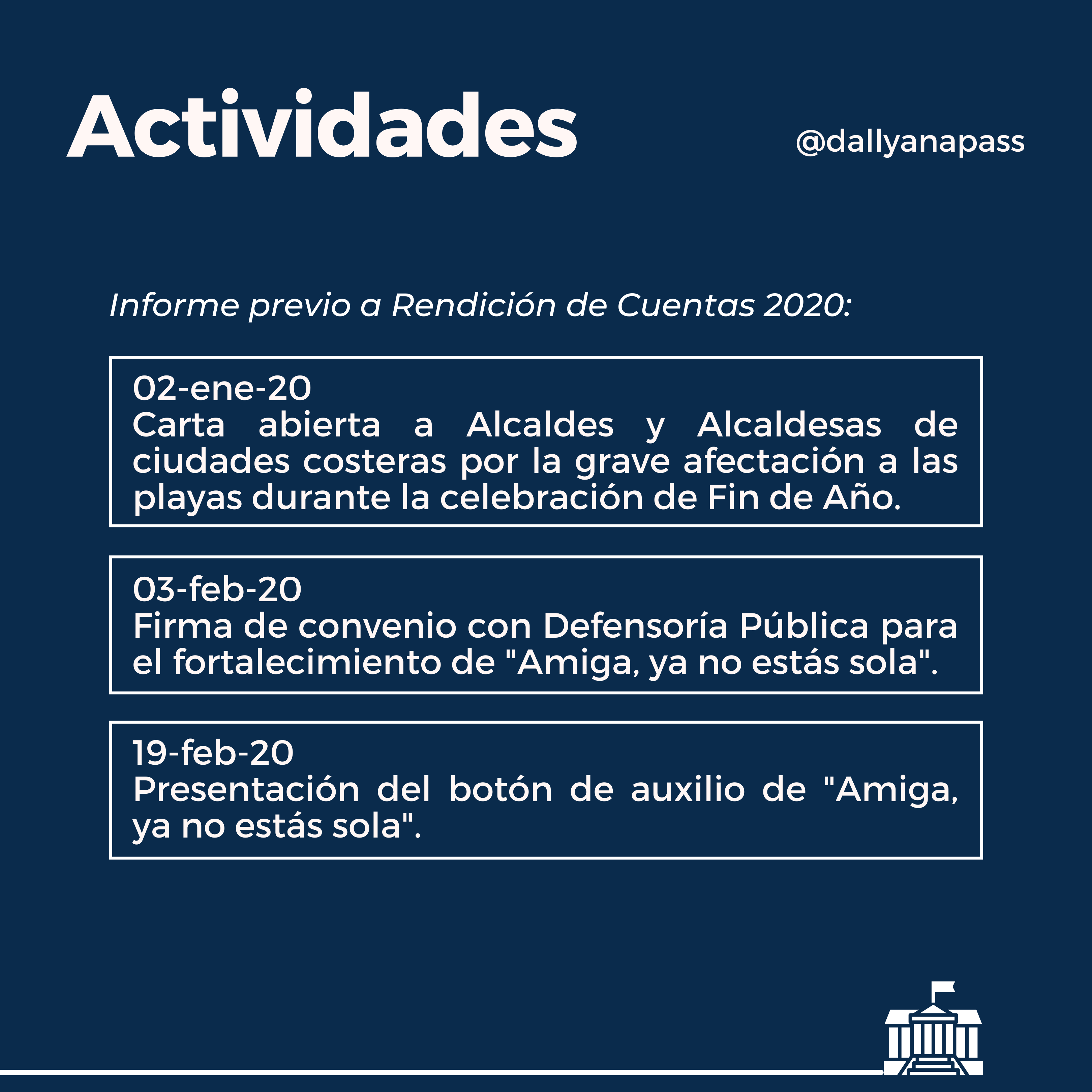 • Creadora y Excordinadora del Plan Estratégico “Amiga, ya no estás sola” y proponete de la Ordenanza de Prevención y Acción para Combatir la Violencia Contra las Mujeres en Guayaquil (2017)
