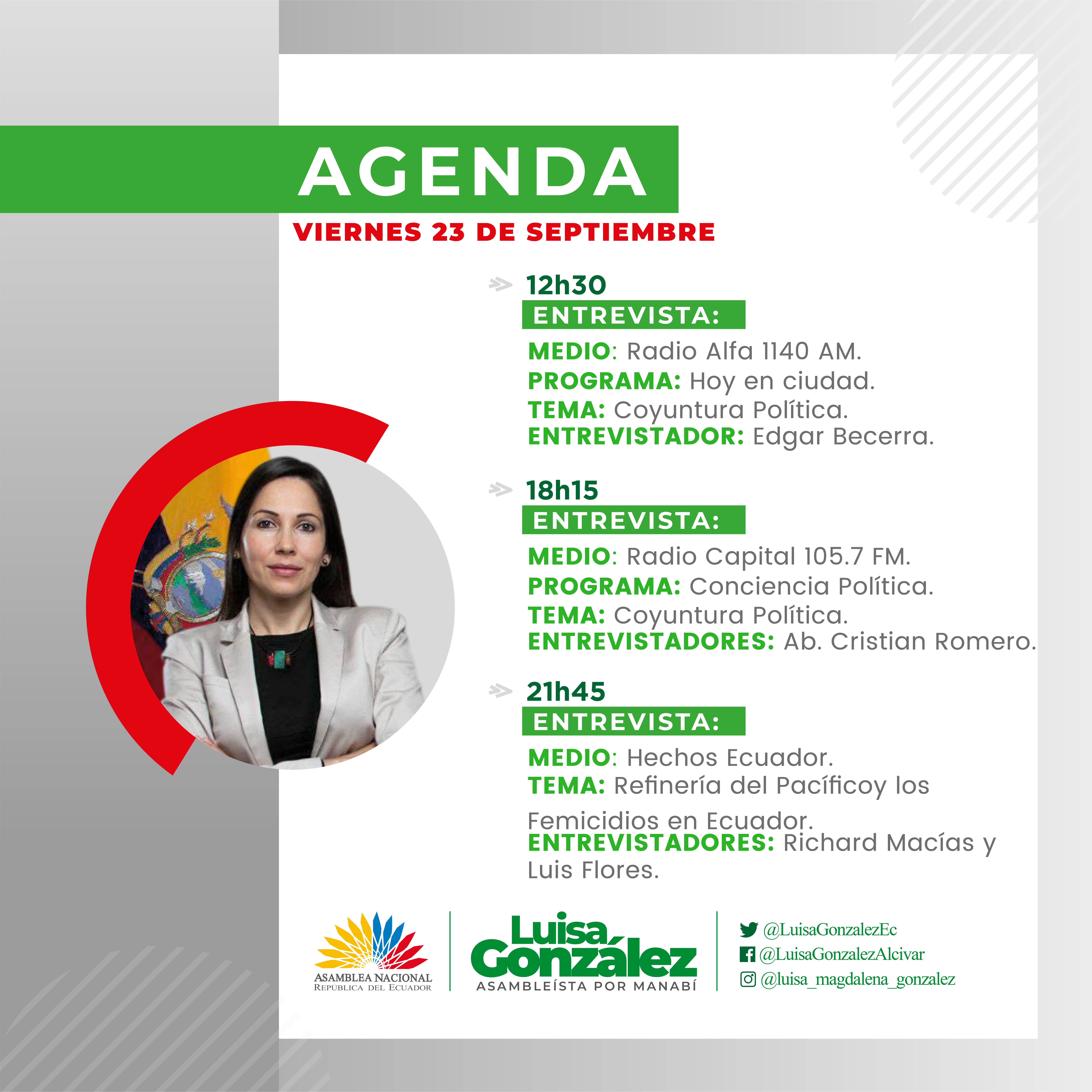 AGENDA DE ACTIVIDADES 23 DE SEPTIEMBRE DE 2022