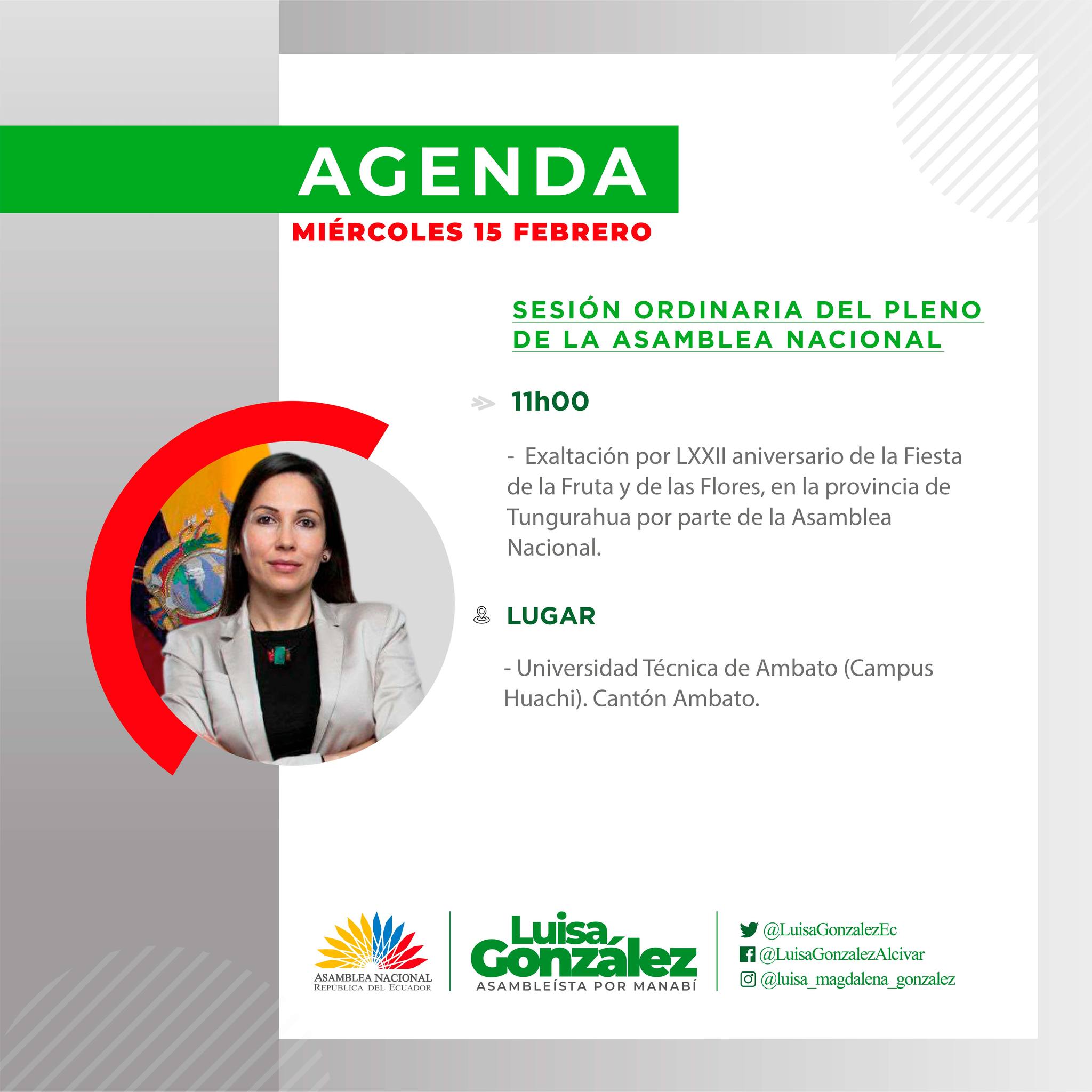 AGENDA DE ACTIVIDADES DEL 15 DE FEBRERO DE 2023