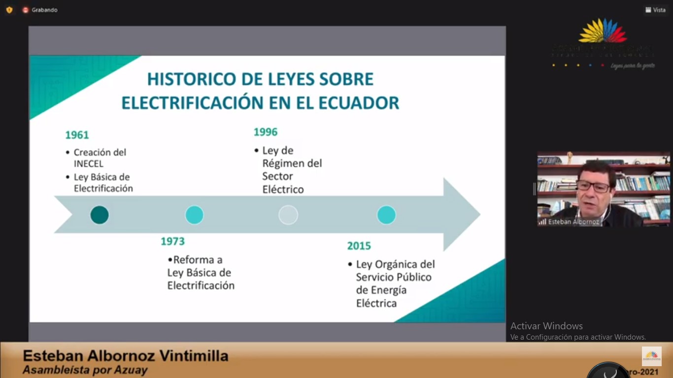 El asambleísta Esteban Albornoz expone el trabajo realizado por la Comisión de Desarrollo Económico entorno al informe de la Ley de Energía Eléctrica.