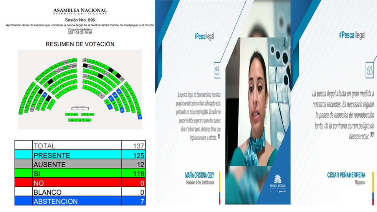 El asambleísta Fernando Flores - Asambleísta por América Latina- condena la pesca ilegal, menciona los antecedentes del informe, tratamiento de la resolución. Tras un amplio trabajo con expertos, hemos podido determinar que la pesca ilegal realizada por buques extranjeros atenta contra la biodiversidad marina. Es necesaria cumplir las tareas de control con rigurosidad, pero para ello se necesitó recursos.