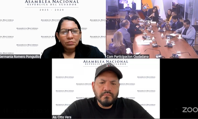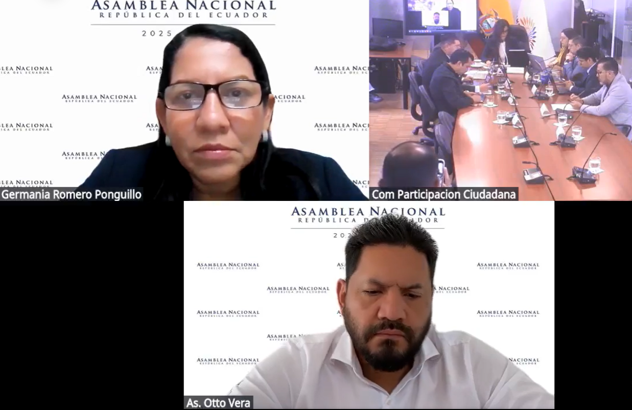 En la sesión No. 015 de la Comisión Especializada Permanente de Transparencia, Participación Ciudadana y Control Social, realizada el 30 de julio de 2025, se dio continuidad al proceso de fiscalización sobre la transparencia de las actuaciones de los operadores de justicia, en relación con la denuncia presentada contra el asambleísta Santiago Díaz Asque por un presunto delito contra la integridad sexual y reproductiva. En este contexto, se recibió la comparecencia de la Dra. Gina Lucía Gómez de la Torre Jarrín, Directora Nacional de Acceso a los Servicios de Justicia, en calidad de delegada del Presidente del Consejo de la Judicatura. A la reunión asistió el asambleísta Otto Vera Palacios, en su calidad de miembro de la comisión.