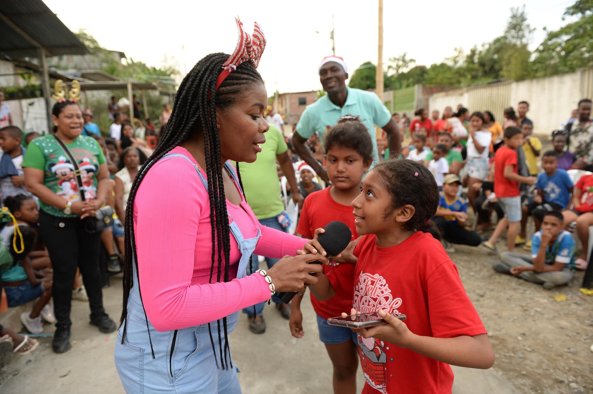 24-DICIEMBRE-2024.-La #TíaPaola EN TERRITORIO junto a la #CaravanaDeLaDulzura fuimos recibidos por los niños y los vecinos de los barrios #JuventudProgresista, sector #SantaCruz y #Cananga en #Esmeraldas. Gracias por su alegría y energía, esto revitaliza nuestra esperanza.