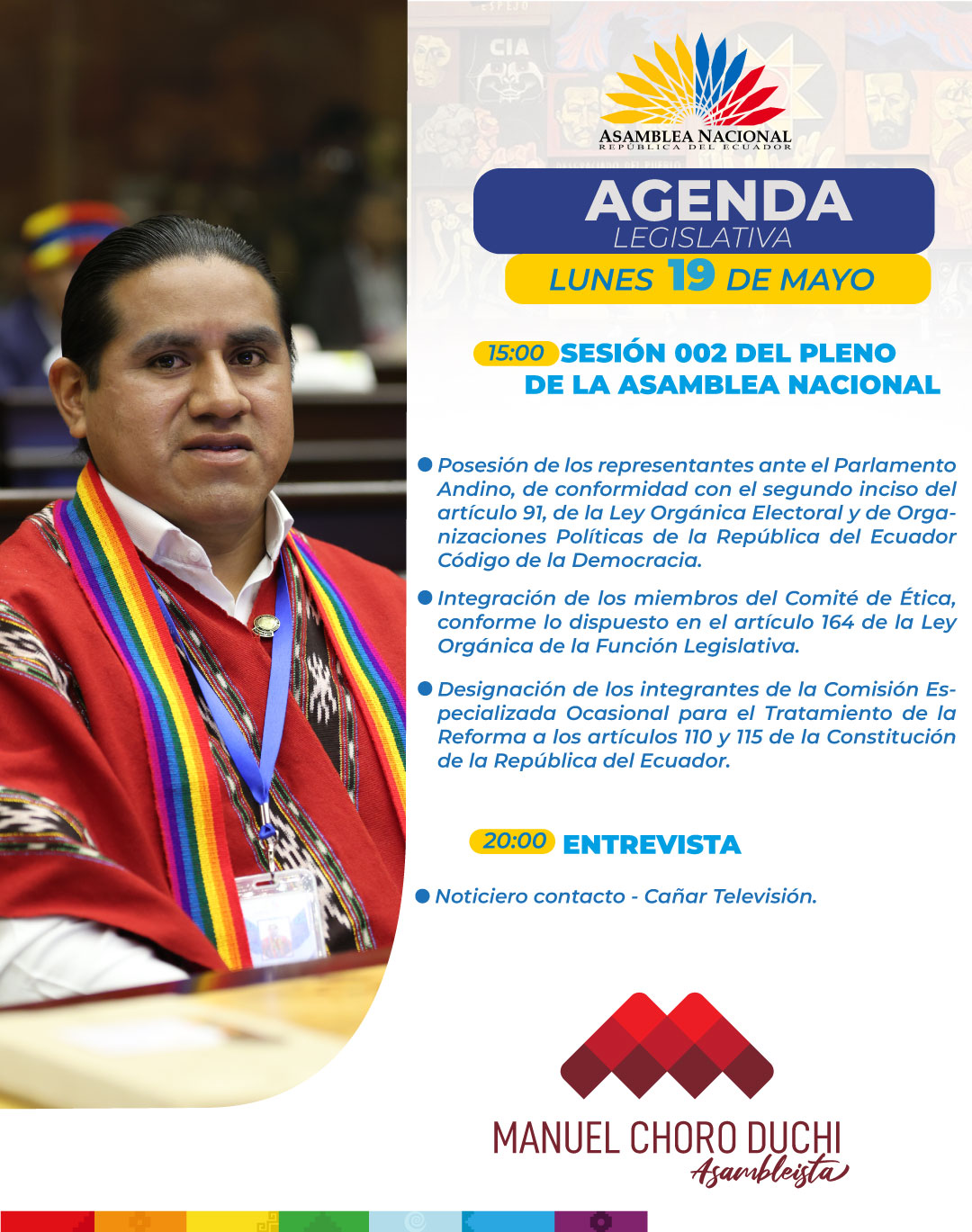 ¡Mañana esta remos abordando la! Acompáñanos para conocer los temas que marcarán la jornada y para la entrevista en Cañar televisión.#ManuelChoroDuchiAsambleísta