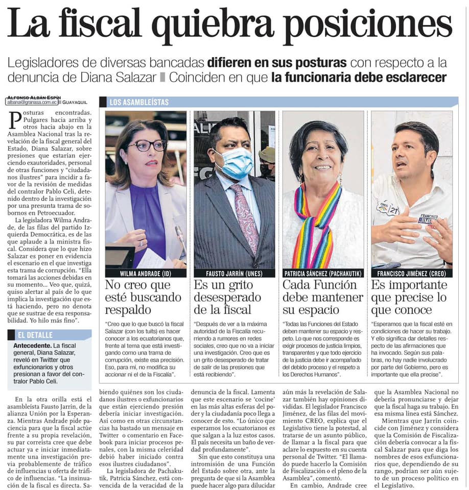 Tema: “Asambleístas de diversas bancadas difieren en sus posturas con respecto a la denuncia de la fiscal general del Estado”.