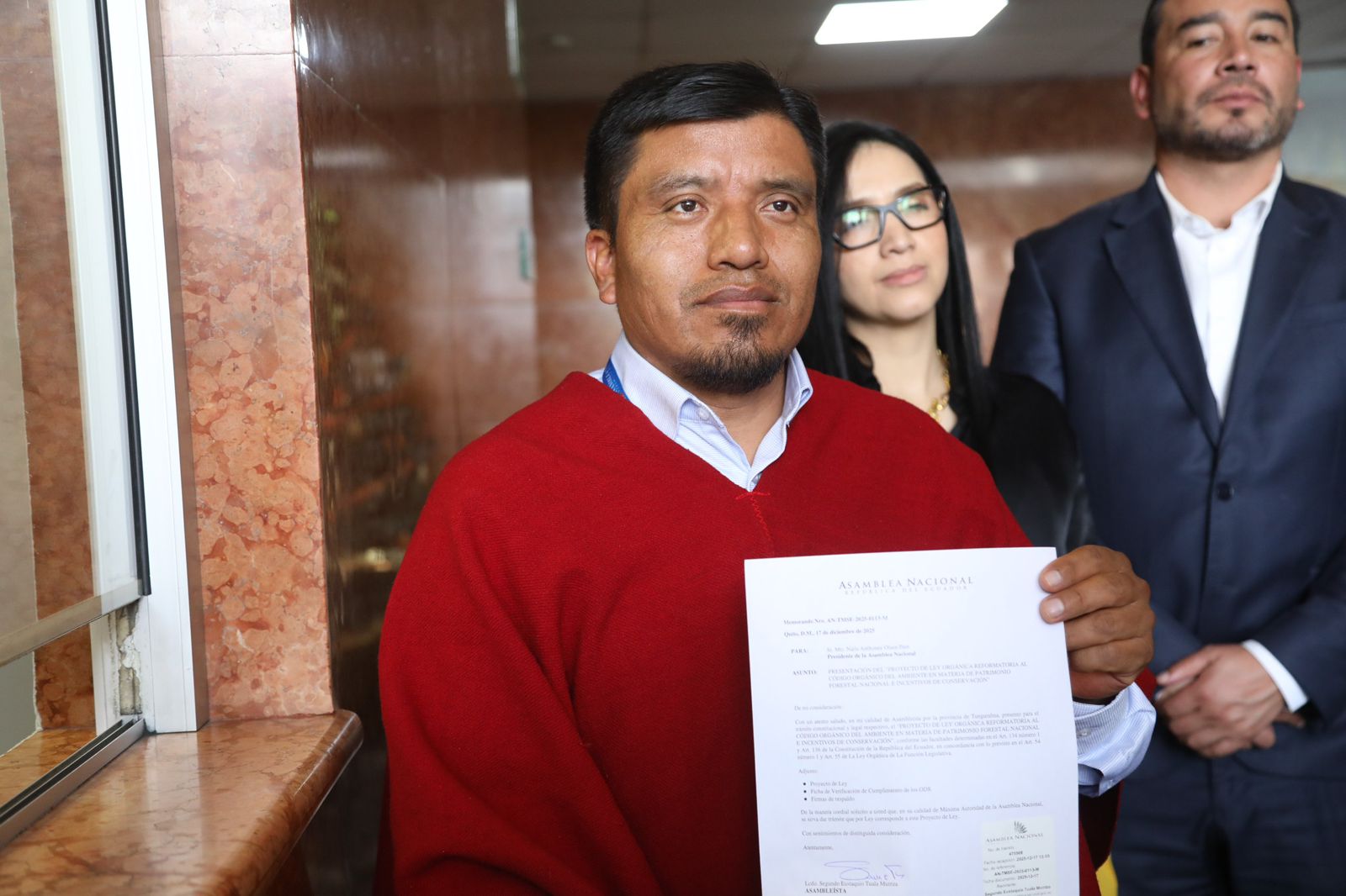 Eustaquio Toala, representante de la provincia de Tungurahua, entregó para análisis el proyecto de Ley Orgánica Reformatoria al Código Orgánico del Ambiente en materia de Patrimonio Forestal Nacional e Incentivos de Conservación, cuyo objetivo es dotar al país de un marco jurídico estable y permanente que garantice la protección de los bosques, páramos y demás formaciones vegetales, en armonía con los derechos de la naturaleza reconocidos por la Constitución.