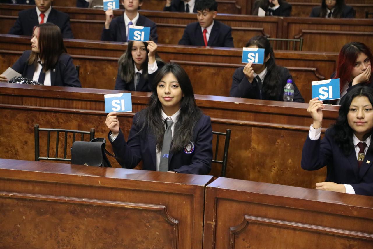 El salón José Mejía Lequerica del Palacio Legislativo fue el lugar en el que 117 estudiantes, en el ejercicio de Simulación Parlamentaria “La Asamblea en mi Colegio”, conocieron, debatieron y aprobaron dos proyectos de ley, este es un espacio teórico práctico impulsado por la Coordinación de Participación Ciudadana de la Legislatura.