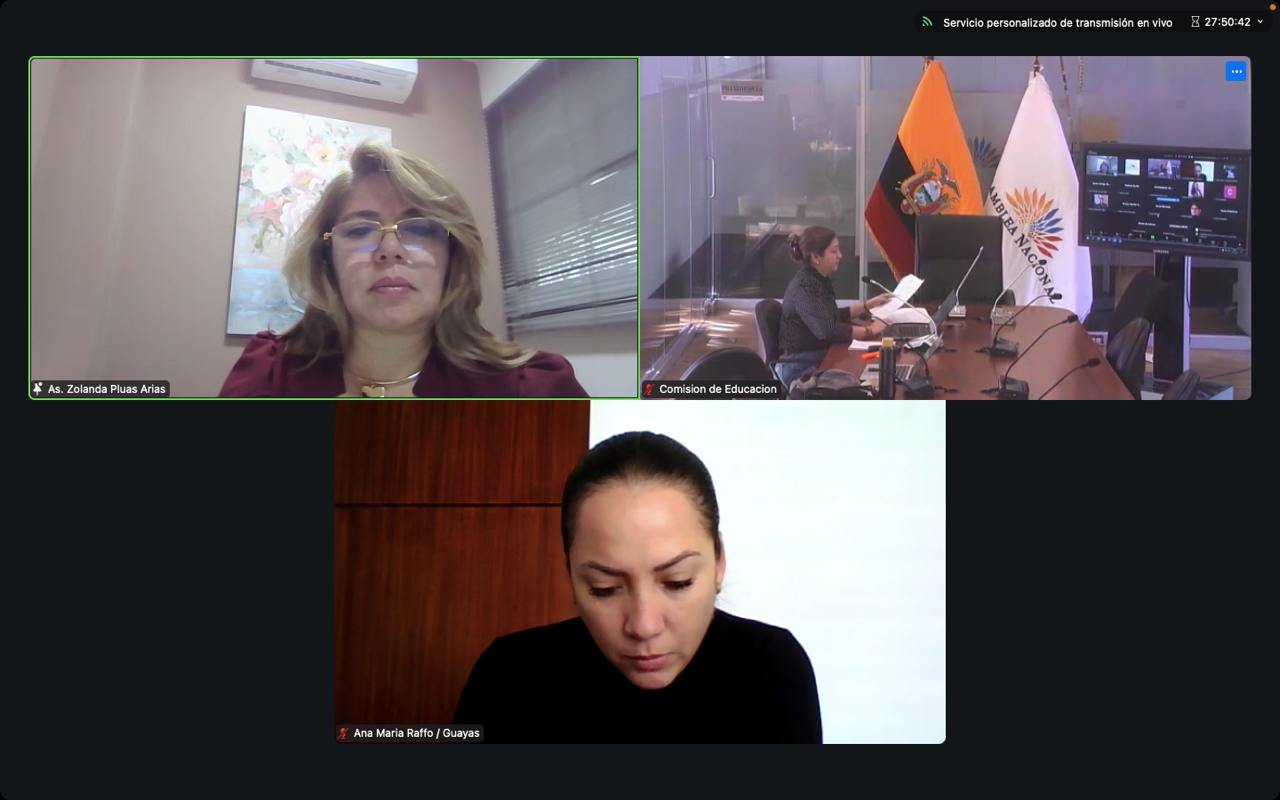 Al respecto, Zolanda Plúas, presidenta de la comisión, informó a la ponente que la mesa legislativa está imposibilitada de continuar con el tratamiento de la iniciativa, “pues no se han presentado los informes necesarios al Consejo de Educación Superior (CES), Consejo de Aseguramiento de la Calidad de Educación Superior (CACES) y Secretaría de Planificación, que avalen la procedibilidad del proyecto".