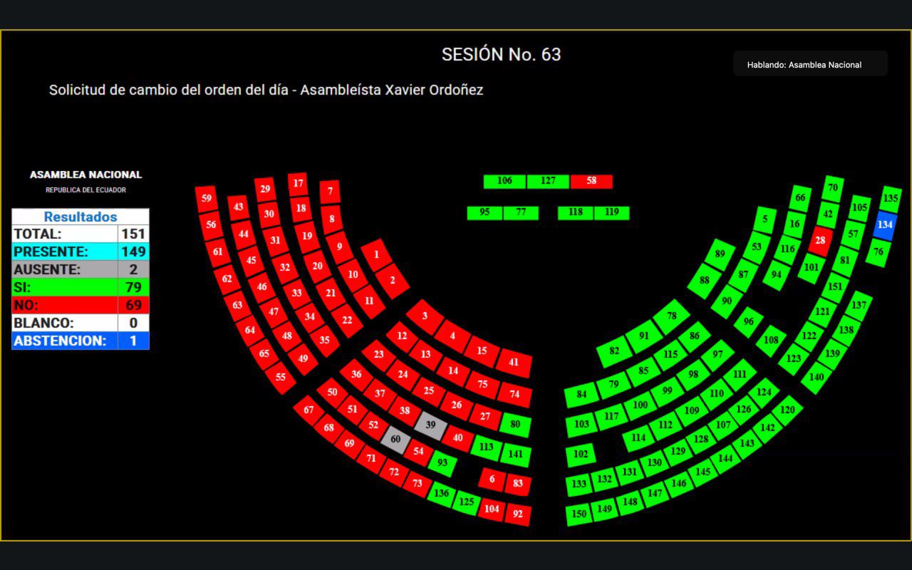 El Pleno de la Asamblea Nacional, con 79 votos afirmativos, aprobó el proyecto de resolución que dispone a la Comisión Especializada Permanente de Relaciones Internacionales y Movilidad Humana iniciar un proceso integral de fiscalización sobre las actuaciones del alcalde del Distrito Metropolitano de Quito, Pabel Muñoz, así como de las autoridades de las empresas públicas metropolitanas, en relación con los procesos de contratación pública y gestión administrativa vinculados a la adquisición de 60 trolebuses.