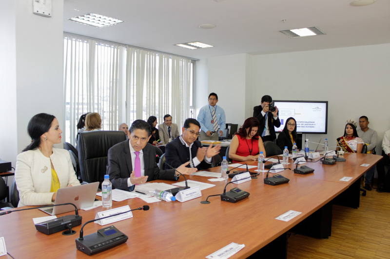 Luz Micaela Lema Illicachi, reina de Riobamba; Jorge Calderón, presidente de la Federación de Taxistas del Ecuador, la Fundación Héroes de Vida, representantes de varias organizaciones sociales y colectivos ciudadanos presenciaron la rendición de cuentas de la Comisión de Justicia y Estructura del Estado.