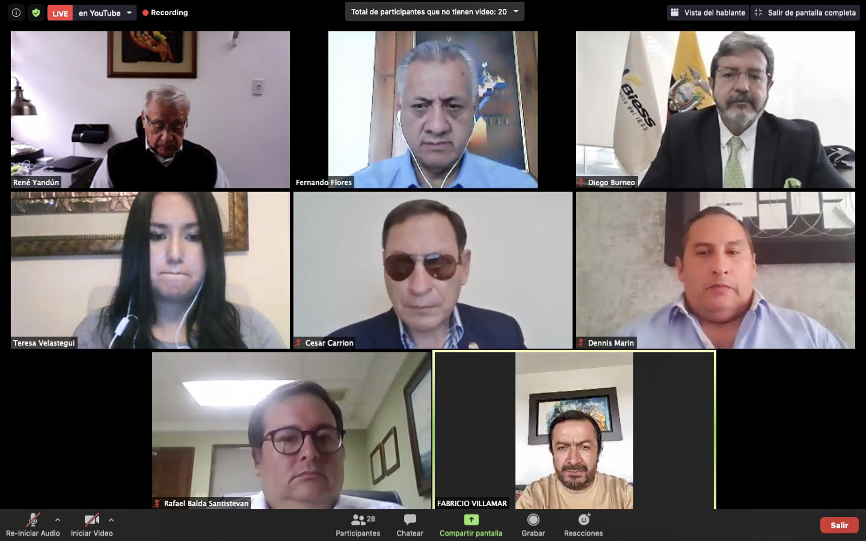 Para conocer sobre el presunto manejo irregular de las inversiones y recursos del Instituto de Seguridad Social de la Policía Nacional (Isspol), la Comisión de Soberanía y Relaciones Internacionales, que preside el legislador Fernando Flores, recibió este viernes, 16 de octubre de 2020, al gerente del Banco del Instituto Ecuatoriano de Seguridad Social (Biess), Diego Buerneo y a Rafael Balda, exintendente del Mercado de Valores.
